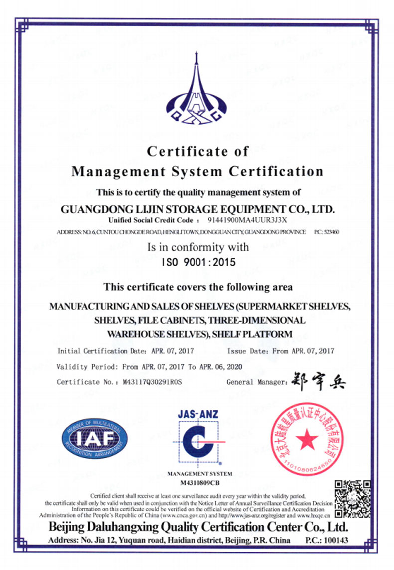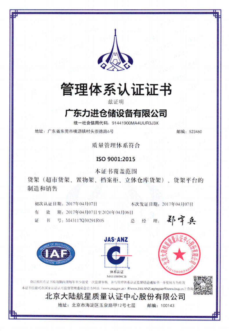 ?2016年5月 更名為廣東力進倉儲設備有限規公司,搬遷至東莞市橫瀝鎮村頭工業區,占地面積12800平方米。